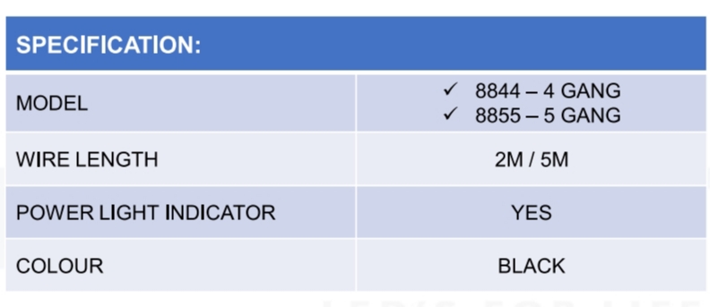 Trailing Socket 8844(4gang), 8855(5gang)